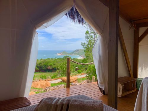 - Accommodations are luxury cabanas overlooking a stunning beach for beautiful sunrises.